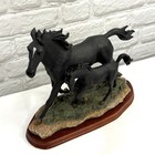 Vtg Black Mare & Foal Running Resin Horse Statue Wild Equestrian Large Figurine