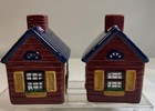 Vtg Ceramic Cottages W/ Usa Flag Salt+pepper Shakers By At Home International