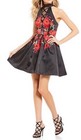 Vintage 90’s Steppin Out Black Velvet & Red Floral Above The Knee Dress.