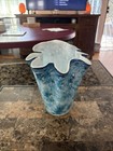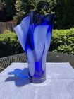 Stunning Vintage Swirled Art Glass Vase Blue And White. 10" T, 25 1/2 W