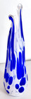 Vintage Blue And White Handblown Tall Glass Art Vase Blue Vase Swung Vase 14.5”