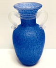 Frosted Speckled Cobalt Blue Matted Vintage Glass Vase 8" Tall With 2 Handles.
