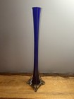 Vintage,mcm,cobalt Blue,glass Bud Vase.16” Tall.tag On Bottom: Gorgeous Designs