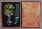 Vintage Singapore Metal Comb & Mirror Set Art Deco Jewel Encrusted W Display Box