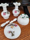Japanese Porcelain Perfume Bottle Stopper Powder Box Set Rare Moss Rose Vintage