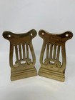 Vintage Brass Art Deco Lyre Bookends Book Ends Metal Music 56 B Pmc 5.5" Decor