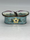 Vintage Chinese Cloisonne Enamel Brass 2 Owls Hinged Trinket Pill Box