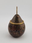 Vintage Cloisonné Enamel Brass Pear Shaped Trinket Box With Stem Floral Design