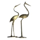 Vintage 70-80's Pair Mcm Brass Cranes Egrets Herons Figurines 8" & 5"