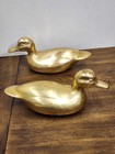 2 Vintage Solid Brass Mallard Duck Mcm Figurine Paperweight Bookends Pair