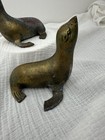 Vintage Brass Seal Sea Lion Figurines Pair Mcm Korea Patina Painted Faces
