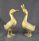 Vintage Pair Of Solid Brass Geese Swan Mid Century Brass Figurines