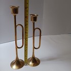 Vintage Brass Trumpet Candlestick Holders (set Of 2) 9" And 8 1/4"