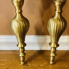 Pair Vintage Gothic Large Ornate Brass Filigree Candlestick Holder Pillar