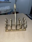 Vintage Arched Brass Letter Bill Desk Organizer Napkin Holder Stand Rack