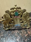 Antique /vintage Ornate Solid Brass Desk Letter Organizer/napkin Holder