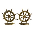 Vintage Brass Gold Nautical Helm Bookends Ship Sailing Wheel Maritime Boat