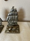 Vintage Solid Brass Clipper Ship Boat W/dolphin's Bookends Sailing Nautical 6"