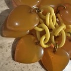 Rare Vintage Bakelite Butterscotch Hearts Charms Pin/brooch