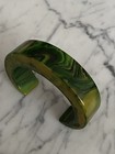 Vintage Deep Green Butterscotch Yellow Bakelite Catalin Cuff Bracelet
