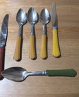 Vintage Butterscotch, Brown,red,green Bakelite Flatware Assortment, Group Of 9