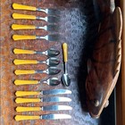 Vintage Butterscotch Bakelite Stainless Flatware 4 Forks, 4 Knives,🔪 5 Spoons