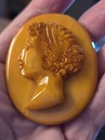 Vintage Carved Butterscotch Bakelite Profile Cameo Brooch