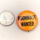 Vintage 1960s Roommate Wanted Orange Celluloid Pinback Button