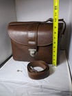 Vintage Brown Leather Camera Case Shoulder Strap Front Pocket Topstitched