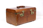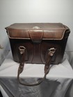 Vintage Brown Leather Hard Side Zipper Drop Front Camera Bag Case 14"x 10"x 7"