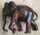 Vintage Carved Wood Elephant Figurine Statue Of Two Elephants