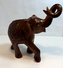 Vtg Hand Carved Wooden Elephant Statue Figurine Sculpture Wood Souvenir Trunk Up