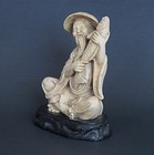 Vintage Asian Oriental Chinese Man With Fish Carved Resin Figurine