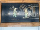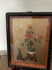 Vintage Oriental Carved Jade And Floral Picture Shadow Box Decoration