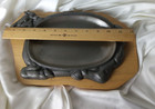 Vintage Cast Iron Bull Steer Steak Fajita Sizzler Platter On Wood Tray