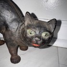 Vintage Cast Iron Black Cat Doorstop Green Eyes Arched Back