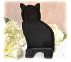 Vintage Black Cat Cast Iron Doorstop - With Green Eyes