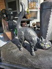 Vtg Cast Iron Black Cat Figurine Door Stop Arched Back Spooky Green Eyes Folk