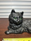 Vintage Cast Iron Black Cat Doorstop Green Eyes Taiwan 10.25" X 5.25"tall X 5"