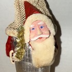 Vintage Japan Santa Candy Container Celluloid Face In Foil Boot Mesh Bag 7”