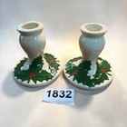 Vintage Hand Painted Ceramic Mold Form Christmas Wreath Gold Overlay Table