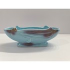Vintage Aqua Blue Ceramic Footed Planter Bowl Mid Century Modern Accent Decor