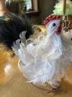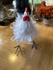 Vintage Chicken Real Feathers Chicken Country Figure Decoration 6x7" White & Red