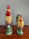 Vtg Gallo Ceramic Rockin Rooster Chicken Set Of 2 Handpainted Farmhouse Cottage