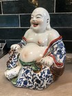 Vintage Chinese Famille Rose Porcelain Laughing Buddha Statue 10" Figurine