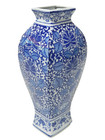 Vintage Chinese Porcelain Vase Blue White Lotus Floral Square Baluster 14"