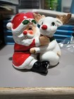 Vintage Fitz&floyd Japan Christmas Santa & Rudolph Salt & Pepper Hugger Shakers