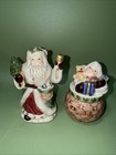 Vtg 1995 Fitz&floyd Christmas Handpainted Santa & Present Salt & Pepper Shakers