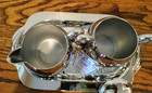 Vintage Chrome Creamer And Sugar Bowl Set With Lid & Matching Tray Box