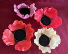 1960 Corbosco Plastic Poppies Flowers Coaster Set (4) Italy Votive Holders Vtg